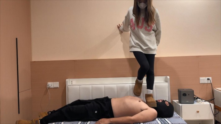 [视频名称] : 小鲨鱼殿下雪地靴踩踏舔鞋底_全体重踩原味白袜